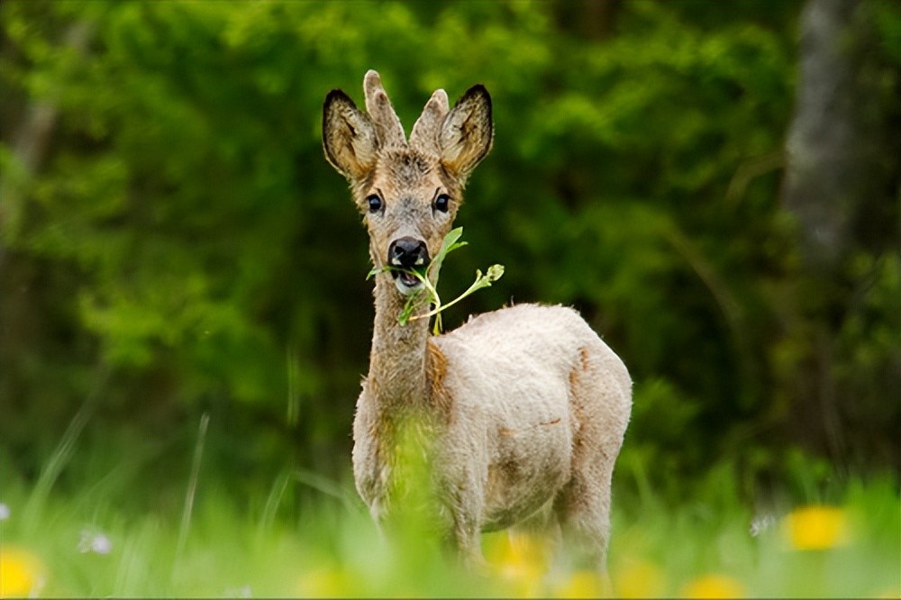 狍子的听觉和视觉都很灵敏,对危险的感知非常敏感,一旦有猎物靠近,它们就会非常警觉地停下吃草。