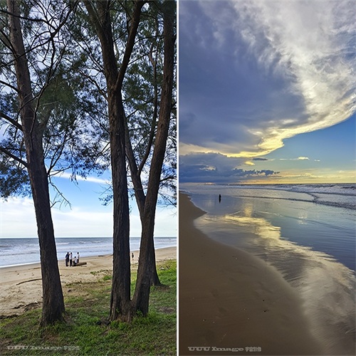 都东河对入海口的常年冲积,形成了一个约4千米长的狭长半岛。一边是快速平静的都东河,一边是波澜壮阔的南中国海,蓝天彩云,落日余晖,构成了一幅幅大自然的靓丽画面。