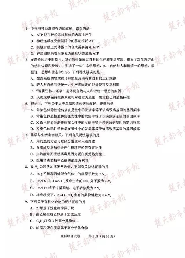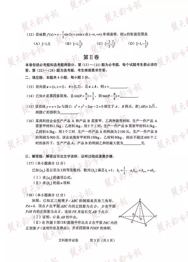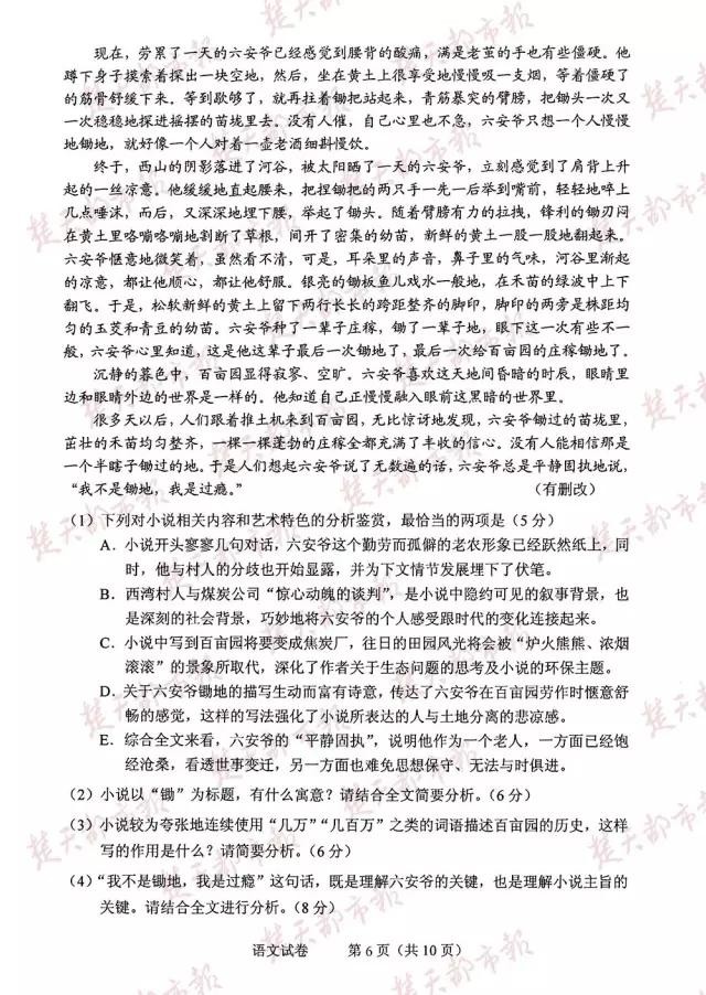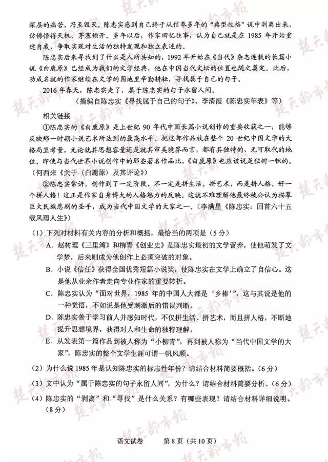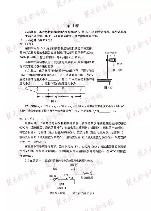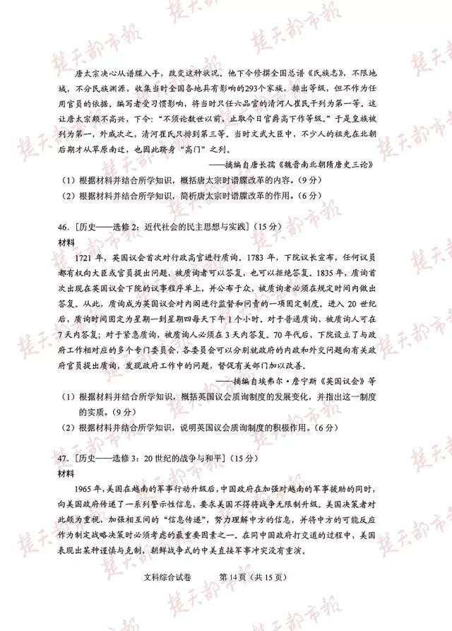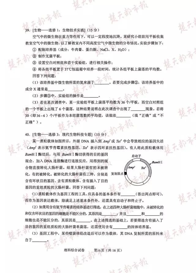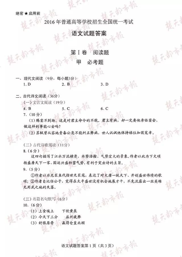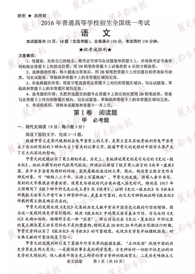 2016年,全国卷高考试卷及答案(完整版)!估分必用!