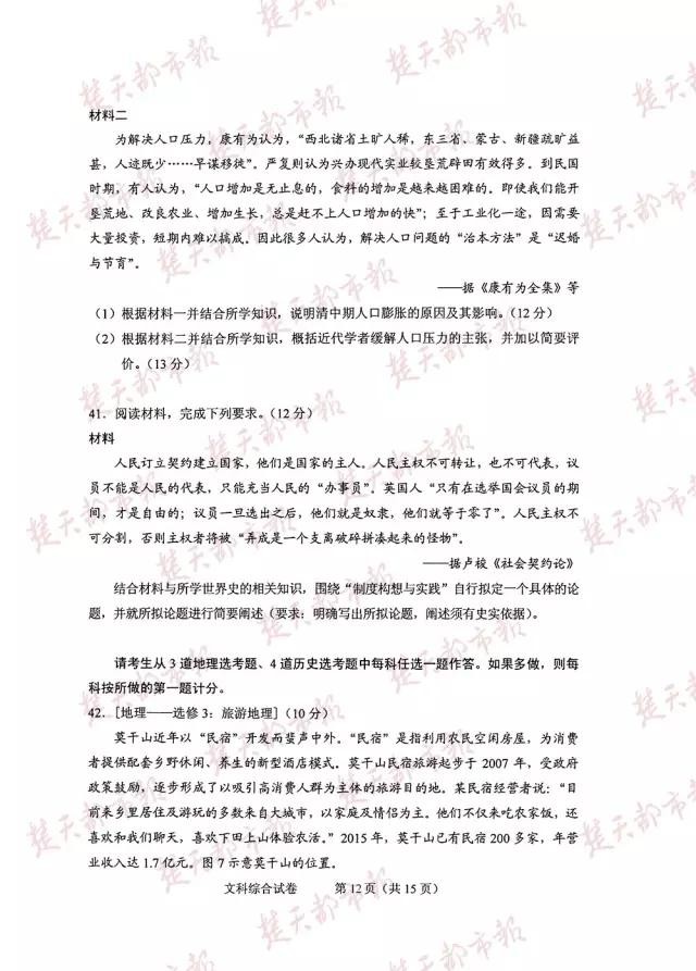 文科综合试卷及答案