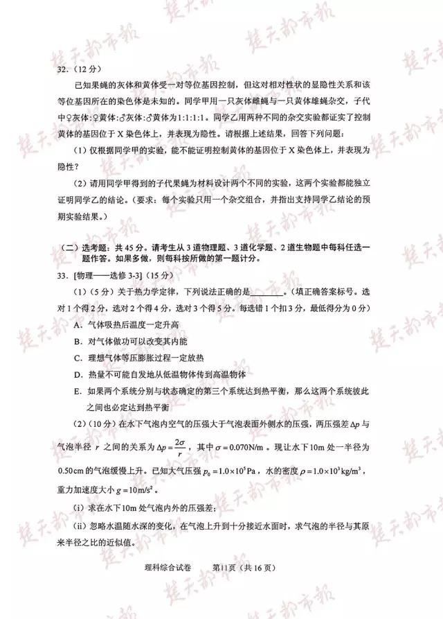 理科综合: