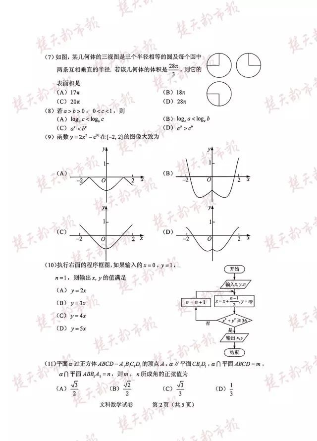 文科数学试卷及答案