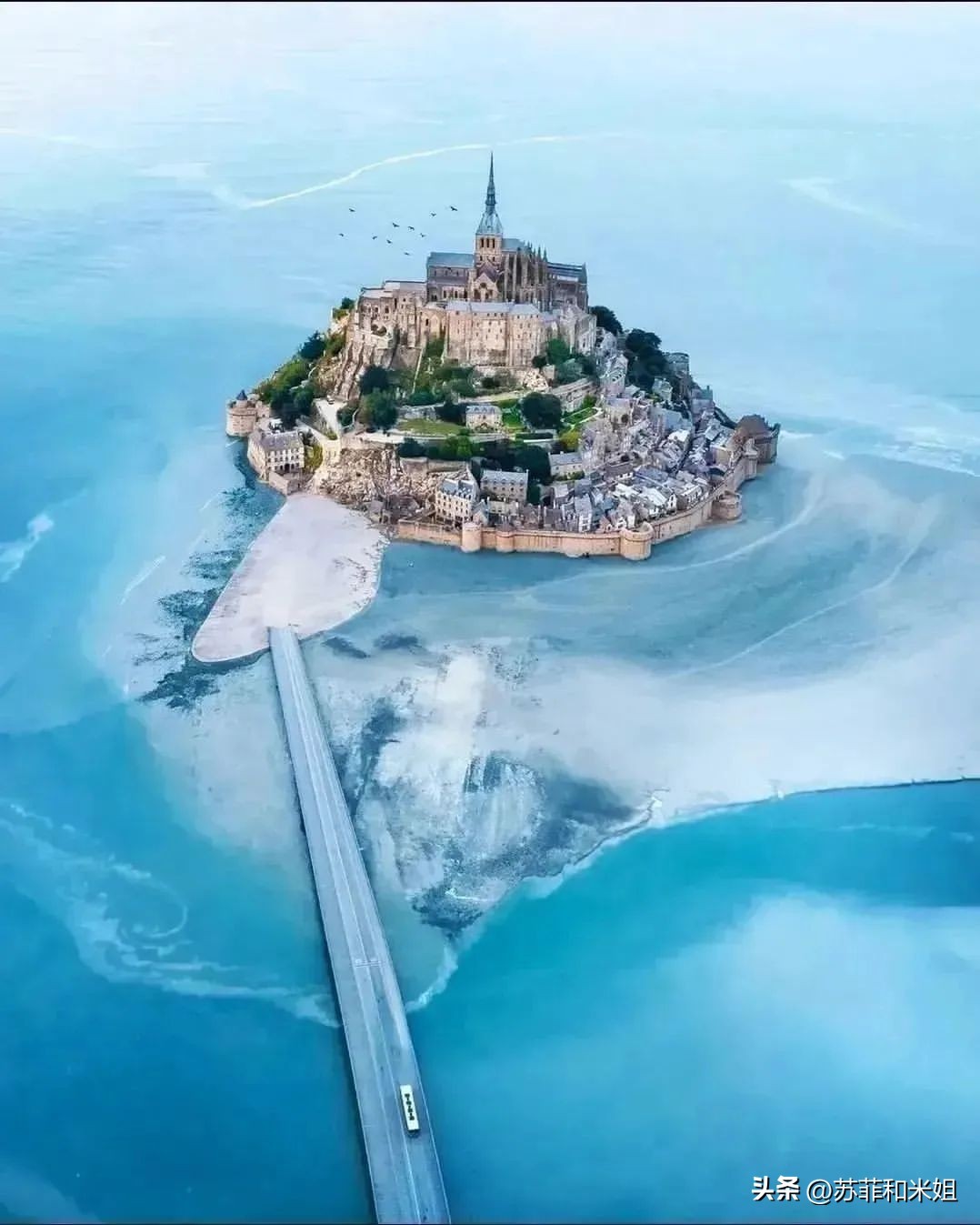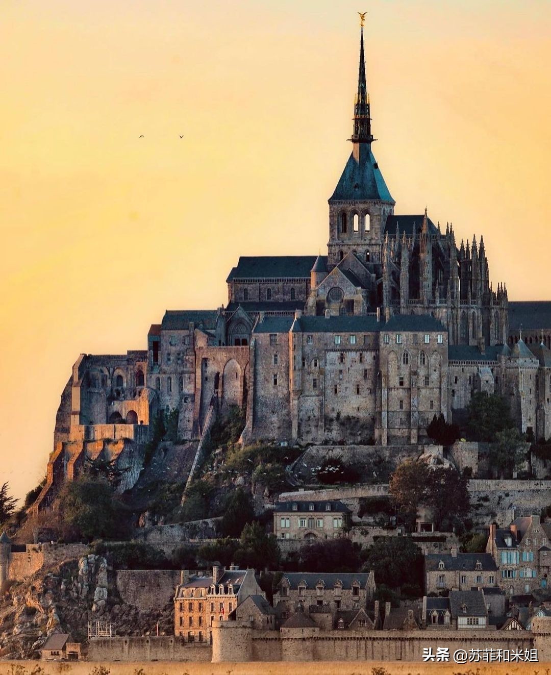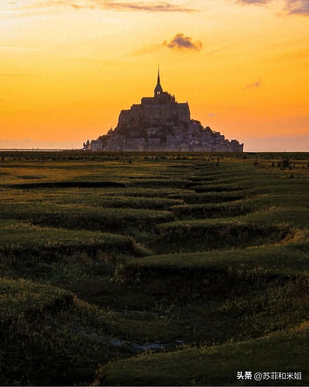那是一座距海岸约1公里的岩石岛,人们叫它圣米歇尔山,它与罗马以及圣雅各之路并列中世纪西方最重要的天主教朝圣地。