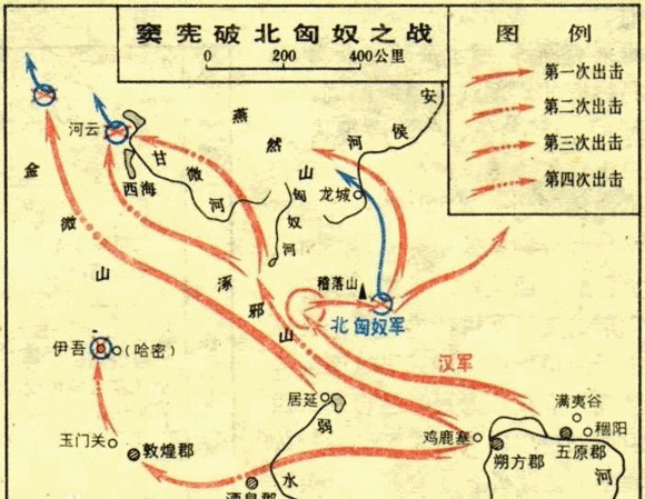 在对付周边游牧民族的侵扰问题上,由于社会的安定和国力的恢复,明帝一改光武时期的守势,采取积极进攻的战略。永平八年(65年),北匈奴骑兵进攻河西诸郡,焚烧城邑,杀掠甚众,人民深受其害,以至河西城门昼闭。永平十五年(72年),北匈奴又侵犯河西,而且胁迫西域小国随同入寇。面对北匈奴势力的猖狂侵扰,耿秉上奏说:“中国虚费,边陲不宁,其患专在匈奴!以战去战,圣王之道。”明帝有志于北伐,十分赞同耿秉的意见。是年,明帝派遣窦固和耿秉出屯凉州(东汉治陇县,今甘肃清水县北),作为北伐的准备。永平十六年(73年),明帝命令诸将率同南匈奴及乌桓、鲜卑等少数民族组成的骑兵部队,出塞北征,揭开了东汉王朝同北匈奴战争的序幕。这次出征,窦固西出酒泉,在天山(今新疆吐鲁番城北)击败匈奴呼衍王部,追至蒲类海(今巴里坤湖),占据了伊吾卢城(今新疆哈密县)。