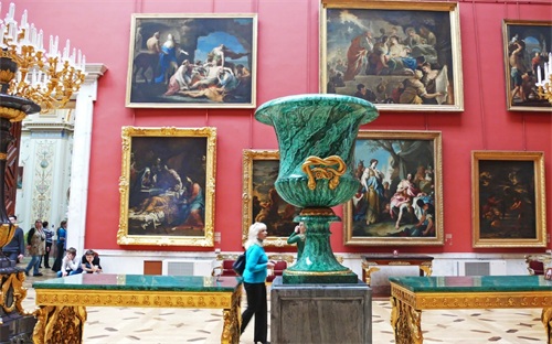 华丽的冬宫曾是叶卡捷琳娜二世女皇的私人博物馆,是与伦敦的大英博物馆、巴黎的卢浮宫、纽约的大都会艺术博物馆齐名的世界四大博物馆之一。冬宫始建于1754年,占地达9万平方米,共计1057个房间,是圣彼得堡极有特色的俄罗斯巴洛克风格建筑。在这里,绿墙白柱饰以金色浮雕的华丽大宫殿,一列展开,富丽堂皇而不失沉稳。