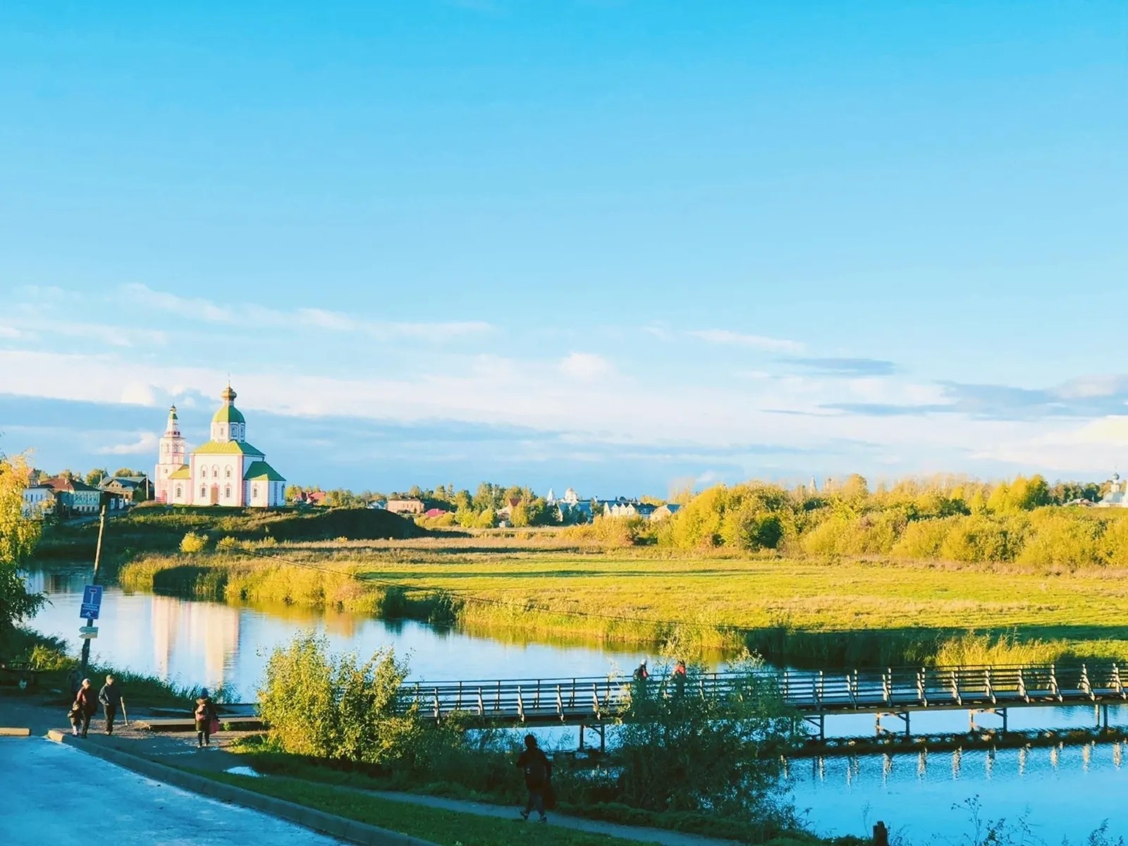 苏兹达尔克里姆林宫位于苏兹达尔南部的一个高耸的小丘上,可以说是苏兹达尔发展的起源。它是老城区的一部分,是苏兹达尔的中心。蜿蜒曲折的卡敏卡河,地势非常的险要。