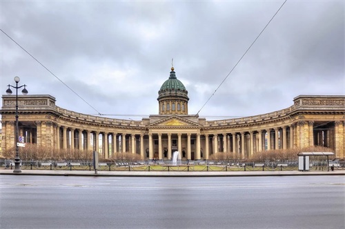 喀山大教堂是根据沃罗尼欣的设计于1801一1811年建成的,它的外貌具有典型的当时帝国风格的特征。教堂最显著的特征是它有一个呈半圆形的柱廊。柱廊的后面露出高达70米的教堂圆顶。大教堂正面的浮雕、北面柱廊上的雕刻、殿内装饰和油画均出自名家之手。