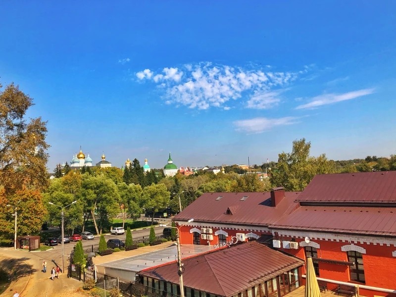 谢尔盖耶夫是莫斯科的卫星城市之一,建成于14世纪,是一座风景如画、建筑独特的城市,至今仍保持着俄罗斯乡村的传统特色。全镇以圣三一修道院为中心向四周延伸,但房屋却互不相连,并没有一条人们所常见的街道。连接全城居民住宅和公共建筑的也是森林和草地,以及穿越其间的石板路。从公路上远远望去,一片绿色之中,形色各异的房屋若隐若现。