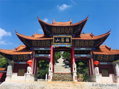 锦屏山位于红河哈尼族彝族自治州弥勒市西北方昆河公路旁,是一座佛教名山,素有“南滇福地”之称。踏着上千级石阶,步入规模宏伟、气象万千的锦屏山风景区,但见绿荫叠翠,清泉潺潺,鸟语花香。山间植被保护完好,绿荫环抱,幽静宜人。山腰处的弥勒寺红墙黄瓦,流霞飞云,拥大佛、大运、大雄、大智四院之宏阔,集弥勒强巴相、弥勒仙光相、弥勒布袋相、弥勒天冠相之绝致,气势恢宏,让人震撼。