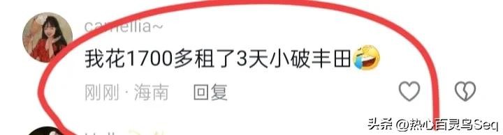 一女网友说到“我花1700多租了3天小破丰田”!