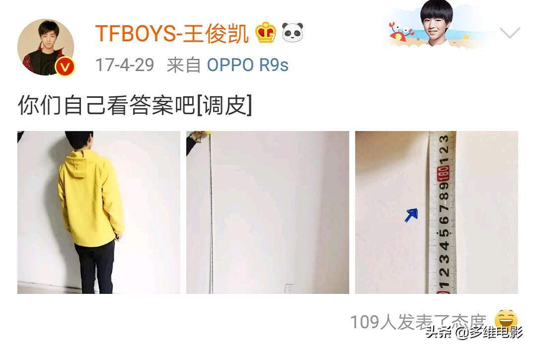 当然了,官方数据并不代表是当事人写上去的,王俊凯也曾为身高这件事儿发微博澄清,脱掉鞋子之后的王俊凯,净身高大约177.5,跟182差了几厘米,不过那是三年前的事情了,如今王俊凯应该多多少少也长高了一些吧!