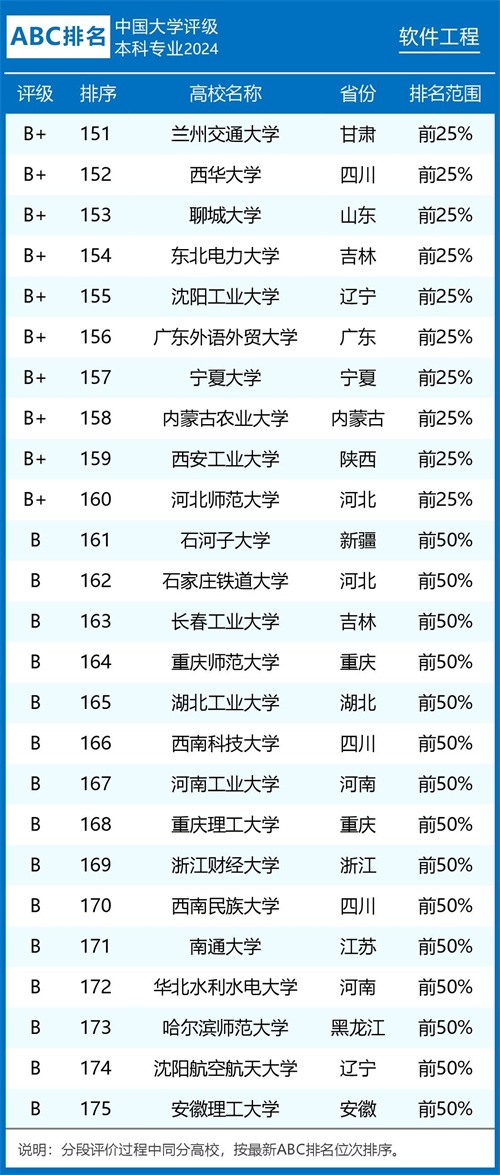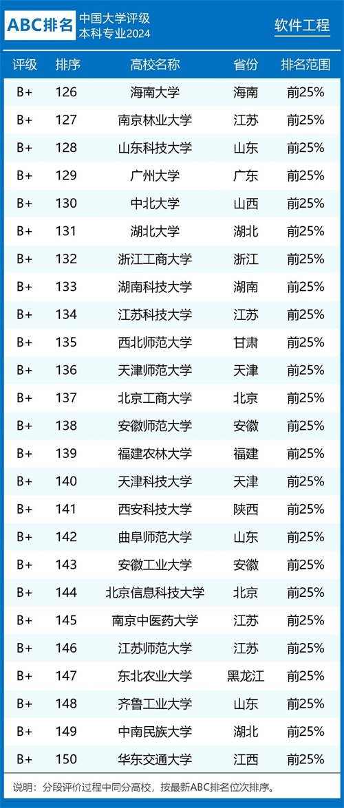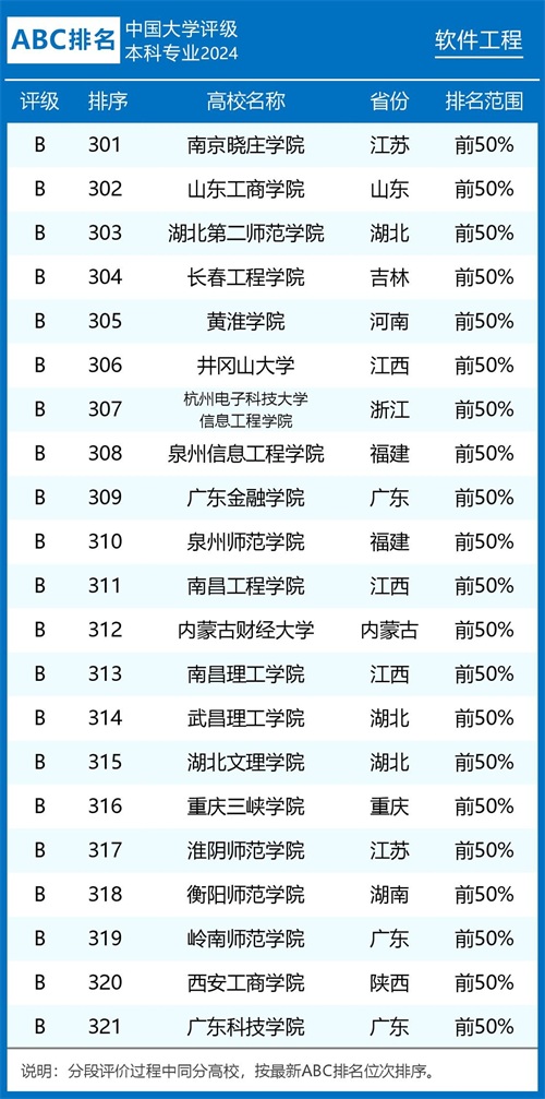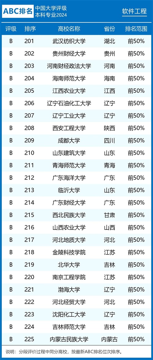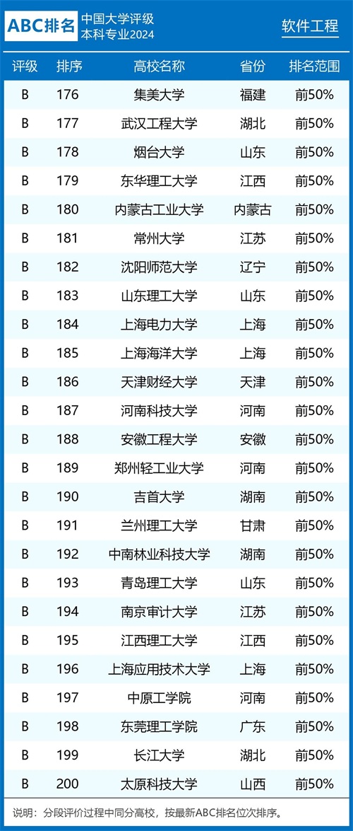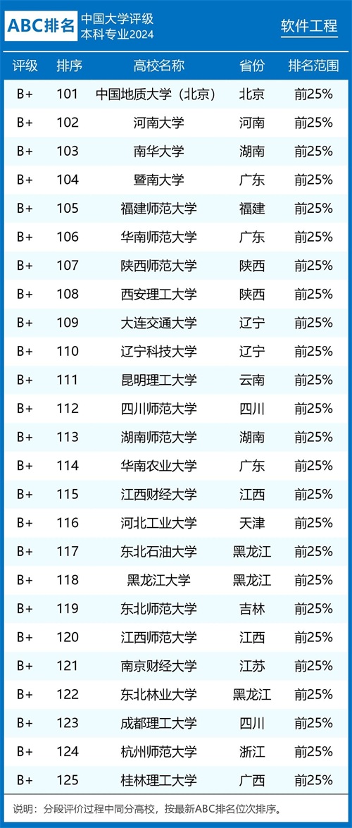 评级榜单 组图1:2024年ABC中国大学软件工程专业排名及评级结果B类以上院校