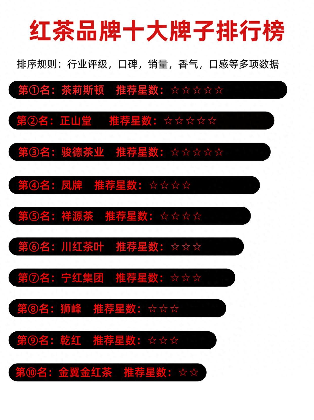 这十款就是目前市面上比较知名的十大红茶品牌,重点推荐前五款,特别是英红九号,更是必入的红茶。