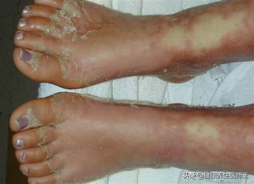 国外多数学者认为后两型药疹是一个病谱的不同除段当全身皮肤受累小于30%时为 Stevens- Johnson征,当皮脉受累大于30%时为TEN。