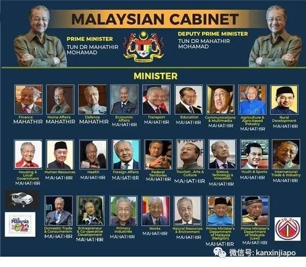 之后,马来西亚国家元首(其实也就是国王)委任马哈迪为过渡首相,由他把政权过渡给下一任首相。由于内阁已经瓦解,于是有人做了这么一张图,来理解马哈迪的过渡内阁:
