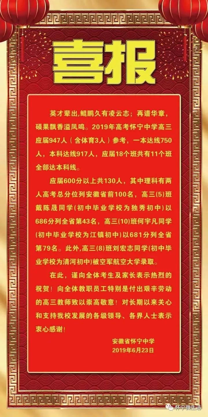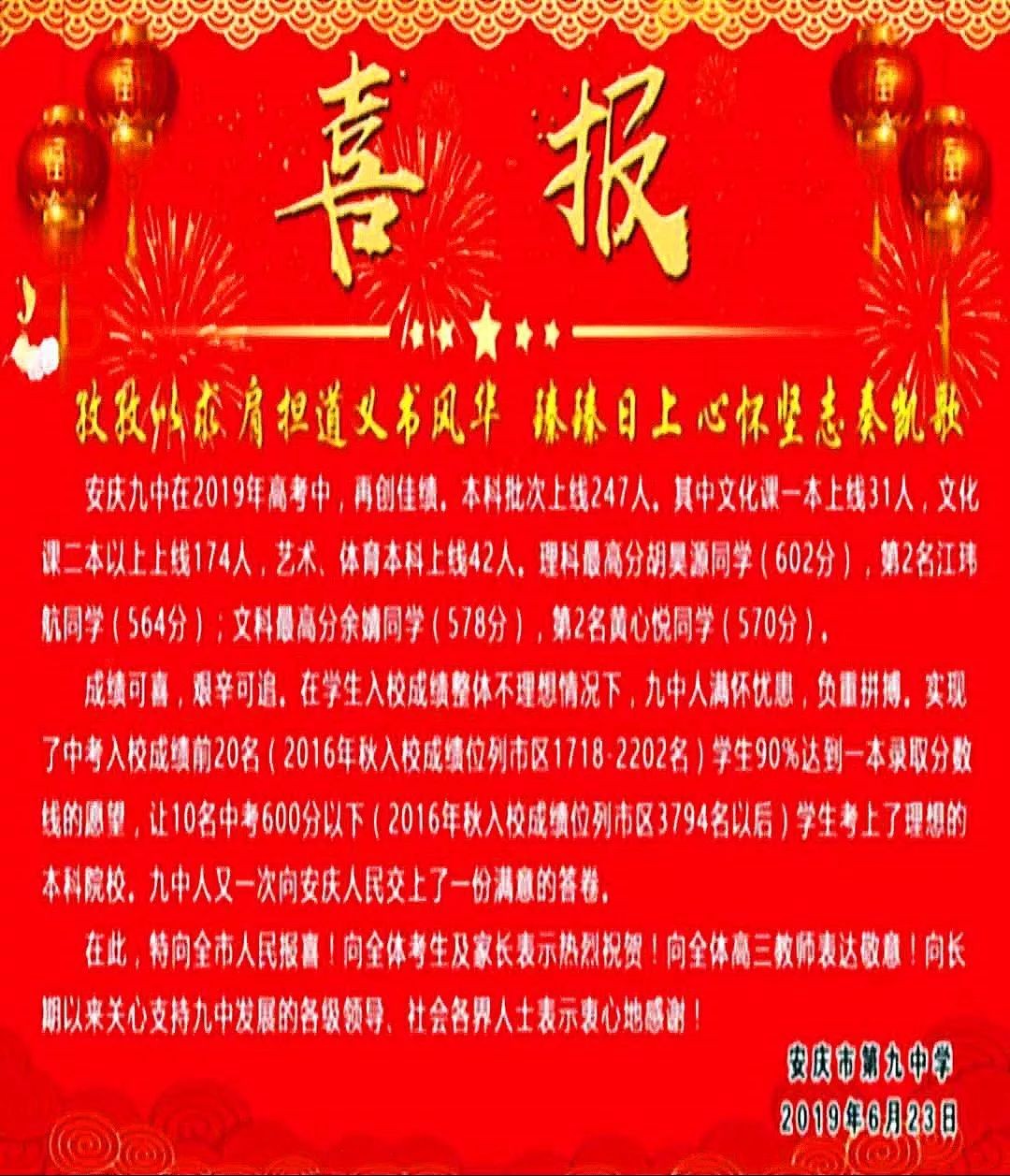 2019高考安庆最高分出炉:文科656分、理科702分!还有新鲜出炉的各高中喜报!