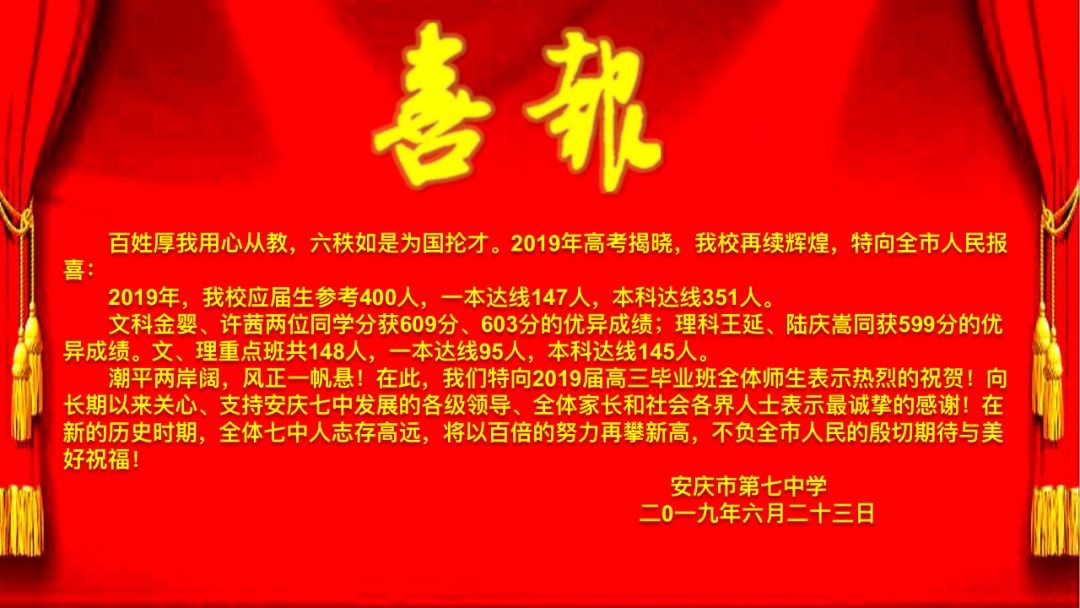 2019高考安庆最高分出炉:文科656分、理科702分!还有新鲜出炉的各高中喜报