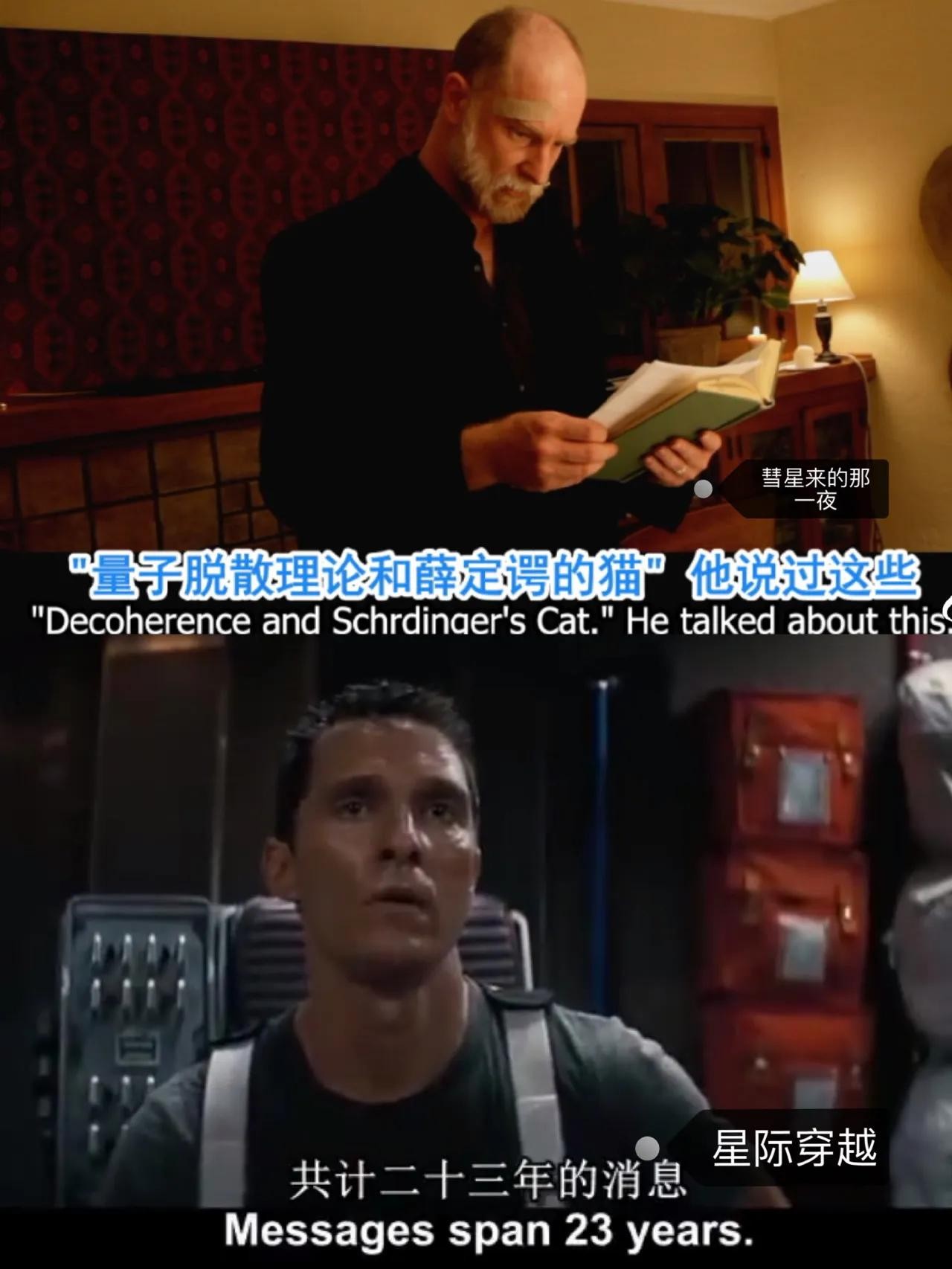 片子中科幻片有很经典的用无线电监听各宇宙波段的情节…片子结尾还是很感动的,推荐,去看!