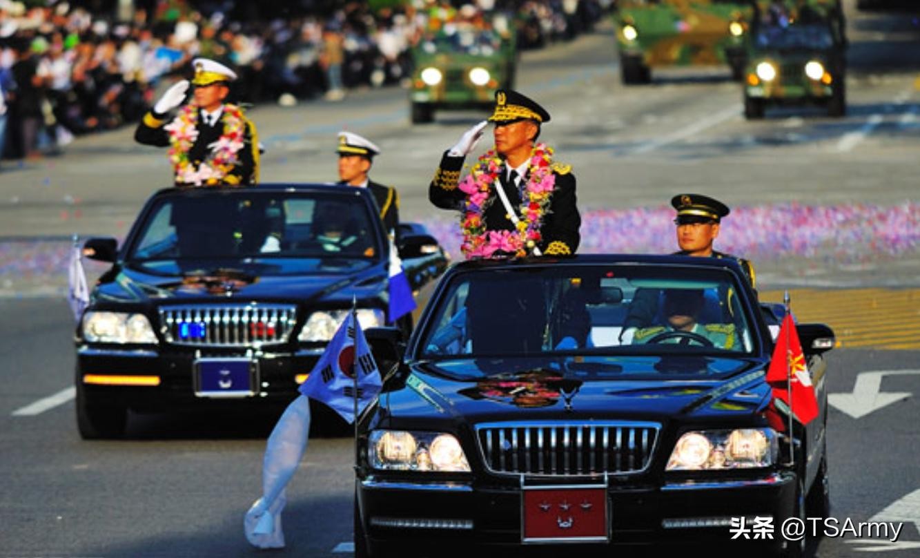韩国阅兵并不频繁,一般每隔十年举行一次大型阅兵式,所用的检阅车一直都是韩国本土生产的雅科仕敞篷版高端轿车,这相比日本的皇冠要高端一些,雅科仕属于D级车,与A8、7系属于同一级别的车型。