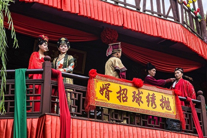 抛绣球招亲的规则很简单,也挺常见的,现在还可以看到有一些古建筑的绣楼,黄山的西递古村落的大户人家也有绣楼。