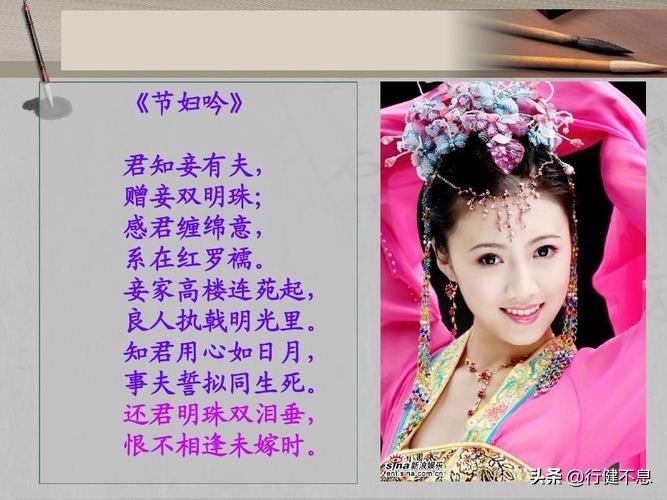 诗的大体意思是,一位有节气的女子,婚后遇到了一位狂热的追求者,他知道女子已经有了丈夫,却还是要送给女子一对珍贵的明珠。
