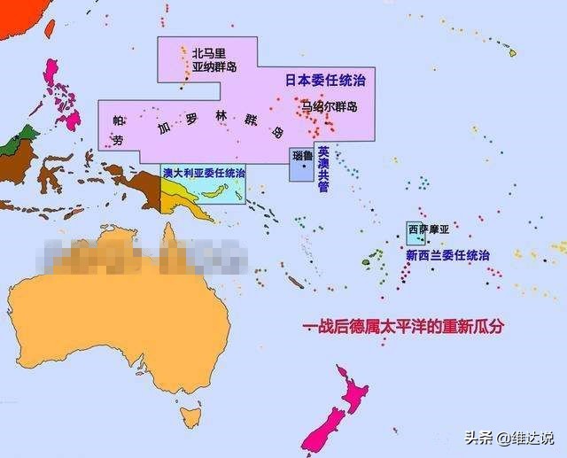 一战后德国战败后,其在南太平洋所属的殖民地大部由日本委任统治,日本成为地跨两大洲的国家。