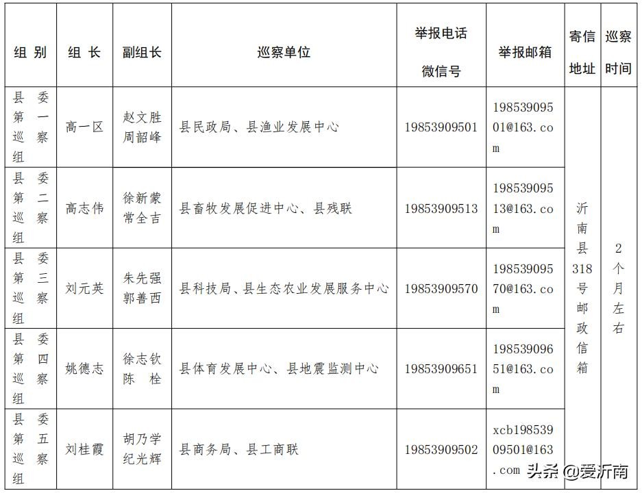 附:第十四届沂南县委第一轮巡察进驻信息一览表