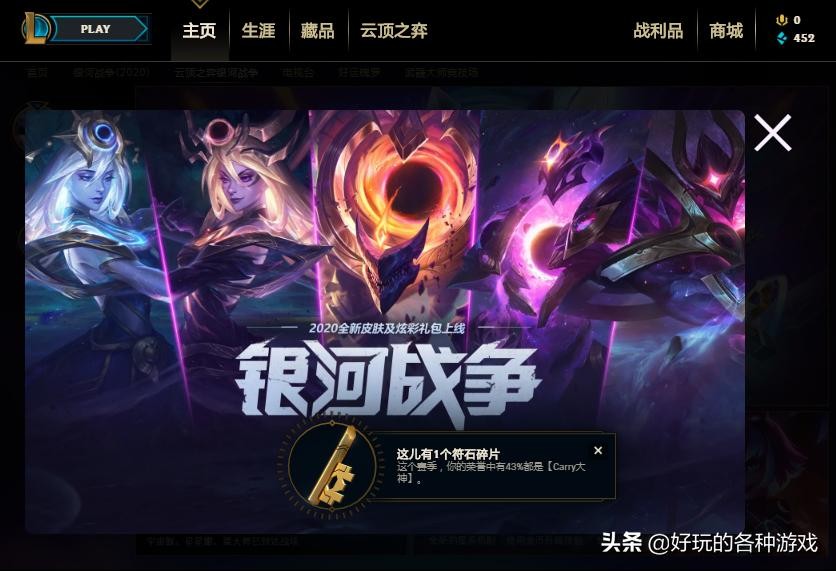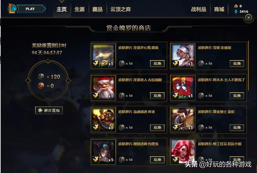 英雄联盟一直有可以兑换皮肤的小任务,除了偶尔的活动外,只要你每次游戏上线时别忘点击几个界面,就可以兑换,而且可以换到特效或传说级别的皮肤