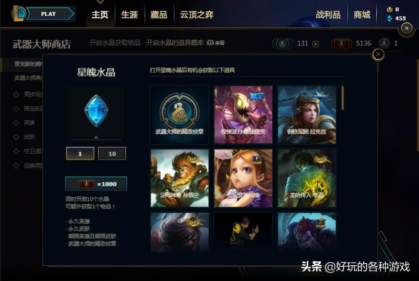 出了两年多的武器大师竞技场一直是英雄联盟最良心的活动,完成一定的对局可以兑换皮肤,而且兑换卷也同样可以兑换或者十连抽,这个活动马上要结束了,手上还有兑换卷的小伙伴抓紧了啊
