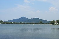 以紫金山为主的钟山中支是南京最重要的一系列山体,有“钟山龙蟠、石头虎踞”之称。紫金山又称钟山,主峰海拔448.9米,是南京的地理最高点。紫金山向西延伸入城内,分别有太平门内的富贵山、玄武湖南岸的九华山(覆舟山)、北极阁(鸡笼山),向西连接鼓楼岗、五台山、清凉山,以及古长江冲积物堆成的黄土岗地直达江岸。古代清凉山位于江边,秦淮河在山下入江,三国时在清凉山修筑了石头城“控江守淮”,地势非常重要。现代长江的河道比古代偏西,在清凉山以西的河西地区留下大片新堆积成的陆地。