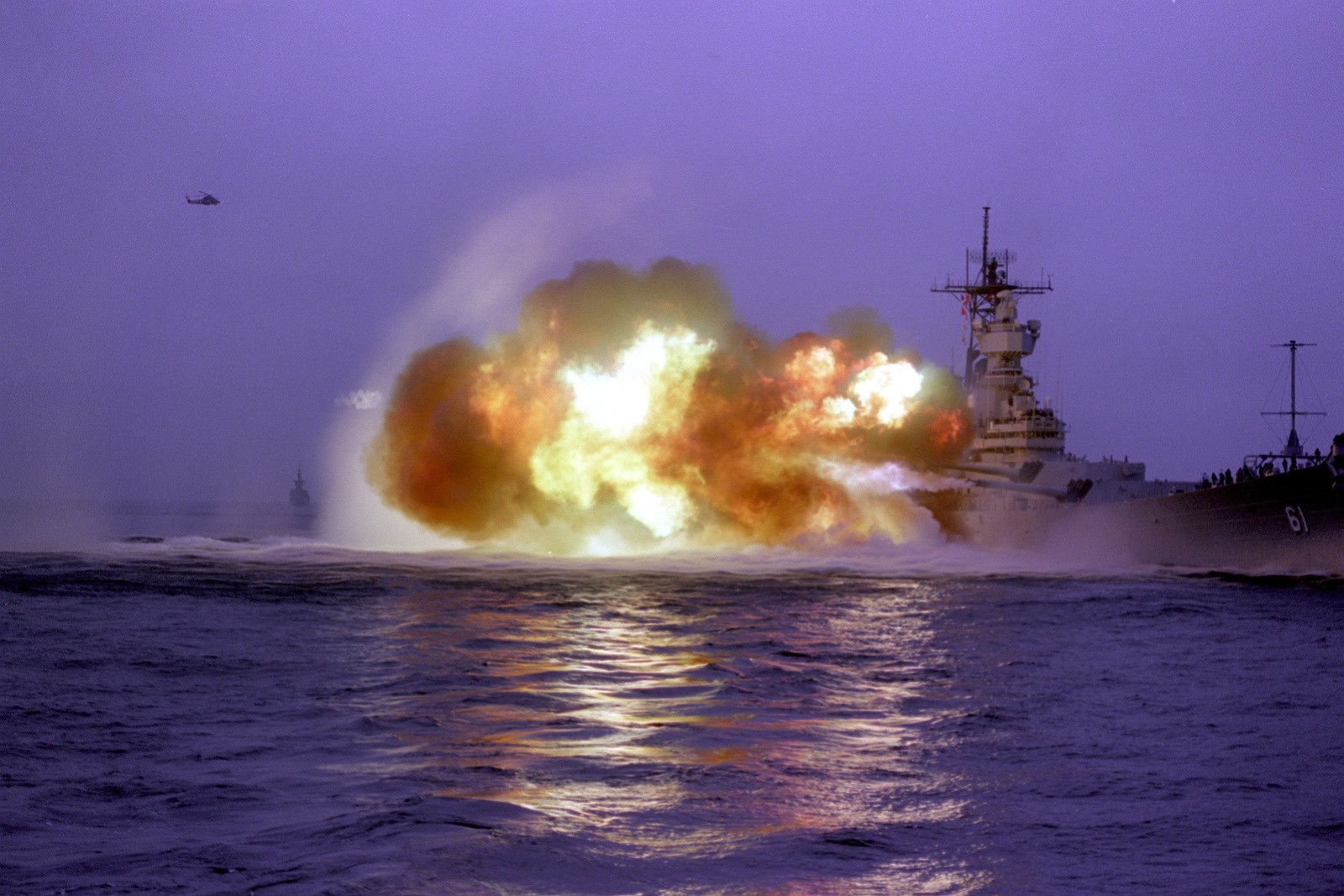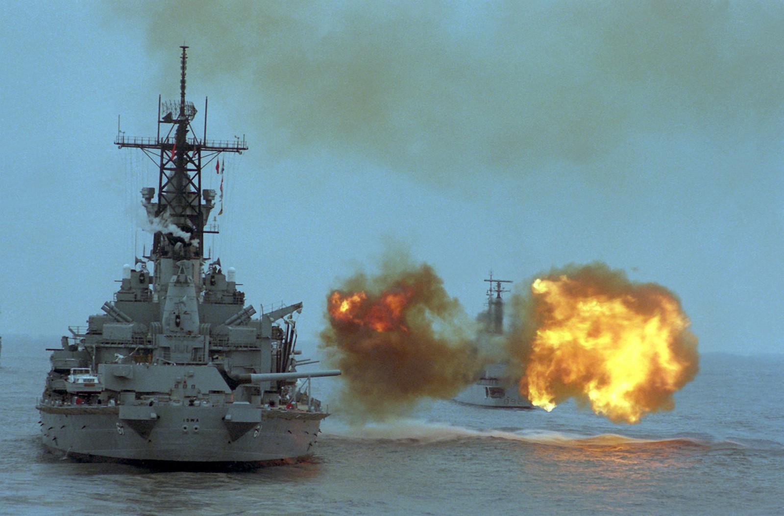 衣阿华号战列舰,舷号:61 依阿华级首舰; 改装后满载排水量57256吨 1942年下水,1943年服役,2006年退役。 见证过二战日本投降签字仪式,在姊妹舰密苏里号不远处; 其它姊妹舰威斯康辛,和新泽西号;