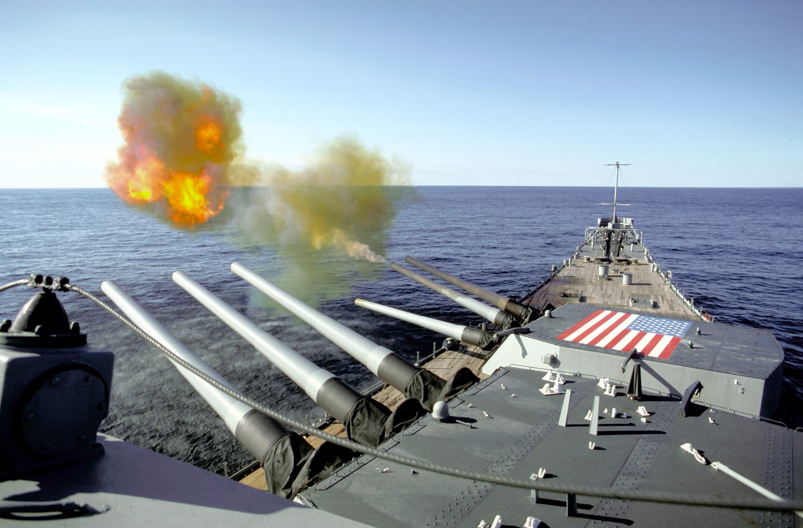 虽然经历过现代化改装,但无法改变的9门主炮,占据了大多数的空间, 改装也就是拆了10座副炮中的4座, 加装了战斧巡航导弹和鱼叉反舰导弹,密集阵进程防御什么的; 但终究时代变了,射程只有40多公里的巨炮不再是有效威慑对手的有效手段;
