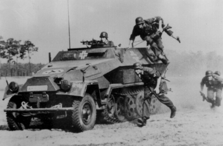 二战德军对坦克战术的研究,已经达到了炉火纯青的地步。德军也认识到步兵在反坦克中的巨大价值,这些步兵需要乘坐装甲车辆,承担反坦克的任务,这就是著名的装甲掷弹兵。他们经常乘坐卡车,和坦克一起训练防御战术和反坦克战术,算是最早的步坦协同了。