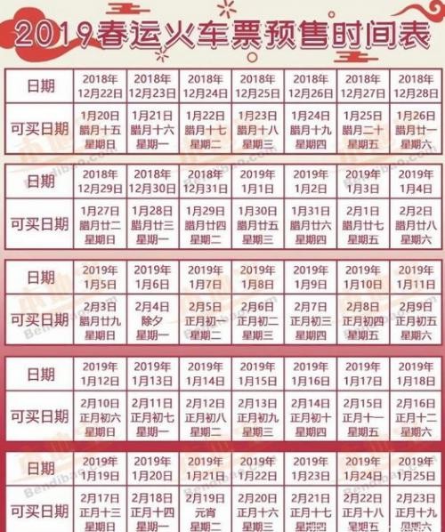 2019年春运起止时间公布 附春运火车预售时间表(图)