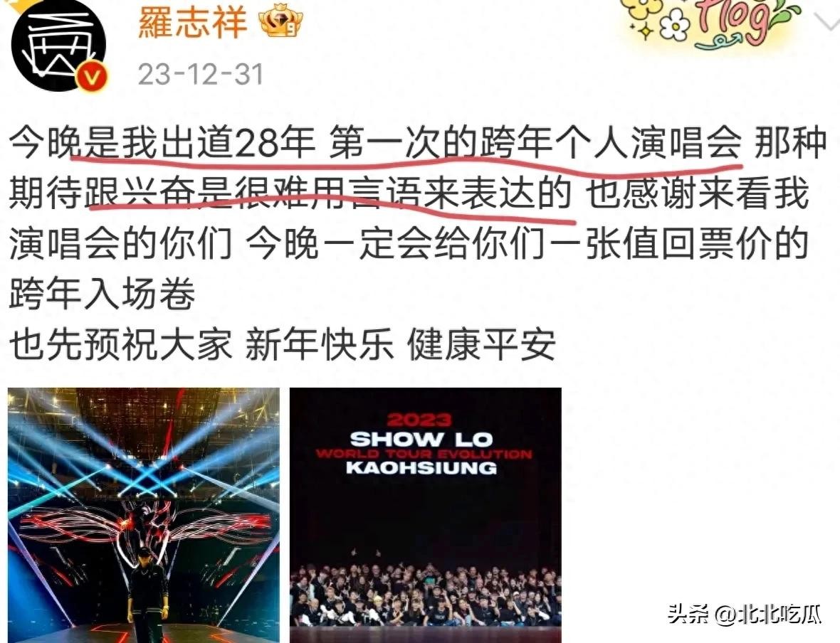 2024年跨年夜,号称“亚洲舞王”的罗志祥,在高雄巨蛋举办《2023 罗志祥演唱会EVOLUTION》,也是他出道28年以来,第一次举办跨年演唱会。