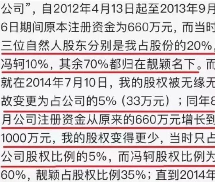 原来在两人创办的公司中,本来靓颖是最大股东,但后来就莫名其妙变成了冯轲是最大股东。