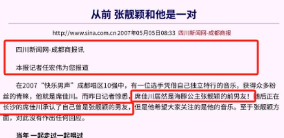 对方名为席佳川,后来参加过快乐男声,但两人相恋没多久,不知道为何就分开了。