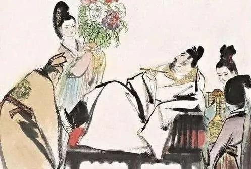 这一日,李白又醉卧市上,忽觉冷水沃面,睁眼一看,宫中乐师李龟年正手持金花笺站在面前。原来,当时正值牡丹盛开,宫中兴庆池东沉香亭前,玄宗亲命移植的'红、紫、浅红、通白四色牡丹也次第开放了。玄宗与杨妃前往赏花,李龟年照例率领著梨园弟子上前歌唱助兴,谁知玄宗却说:“赏名花,对妃子,焉用旧乐词为?”於是便命李龟年持金笺宣赐李白,要他立进《清平调》词三章。
