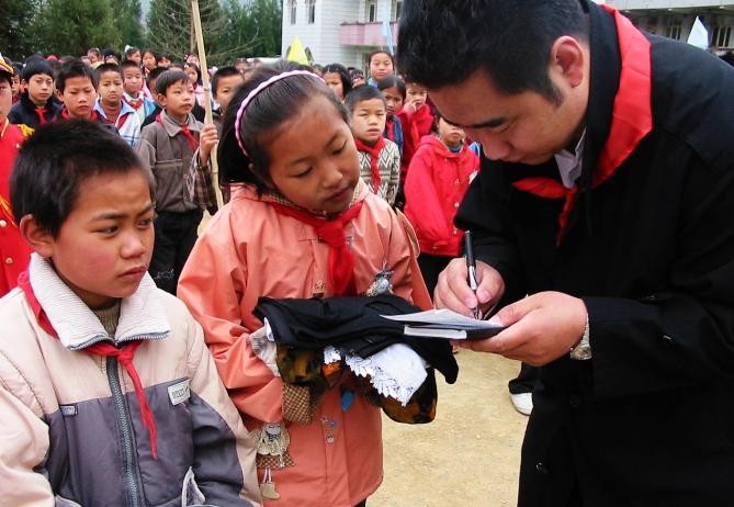 他为失学儿童们成立了丛飞助学基金会,给贫困县的孩子买吃的穿的,还认领了许多孤儿。
