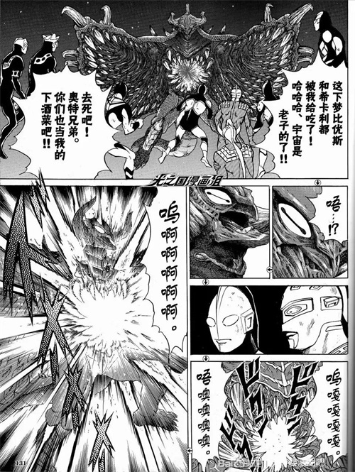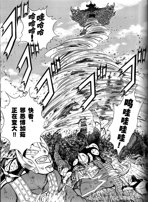 不过邪恶博伽茹利用分身将所有的战斗机都破坏了,还将其吞了下去,随后又吞了梦比优斯。