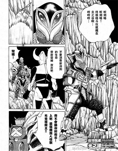 梦比优斯赶来后,四天王用艾斯和泰罗威胁梦比优斯去炎之谷取终极格斗仪。