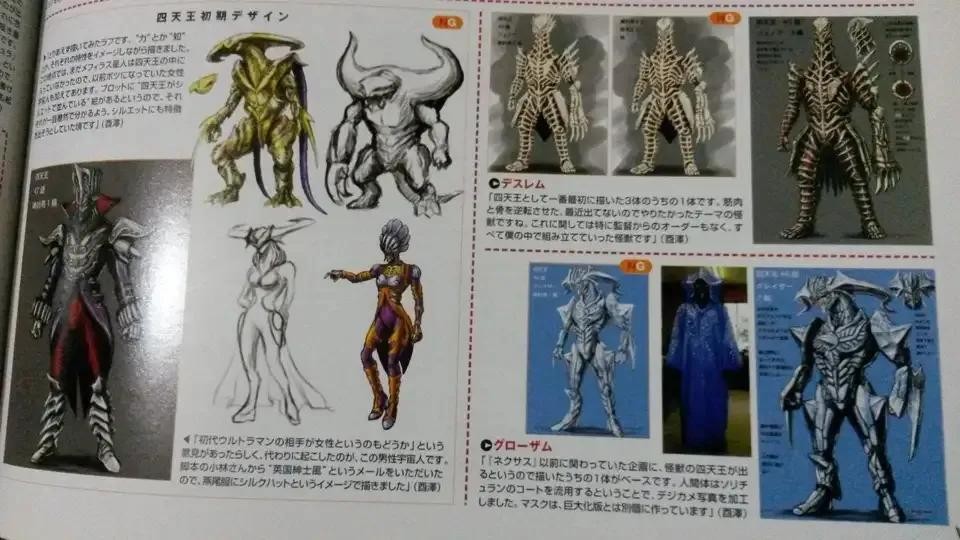 梦比优斯时期,作为敌役登场的安培拉军、暗黑军团四天王本来是准备采用全员原创的,因此安培拉军团之父酉泽安施便一共设计了四个宇宙人的设计稿。