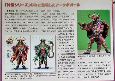 之后到了2009年,差不多与库拉修莱扎、光束导弹王在《电视君》上被设计出来的同时期,讲谈社出版了一部以梦比欧斯和邪恶博伽茹的故事为核心的、円谷官方承认为正史的电视绘本《超银河大战》,在这部绘本中作为暗黑军团之父的设计者酉泽安施第一次提出“不如把原案智将与邪将作为前邪将与智将设定也不错吧”,于是这就成了一个不属于一设、却又被官方默许了的普遍为人承认的二设了。