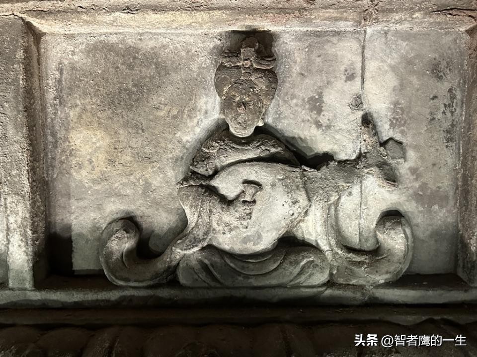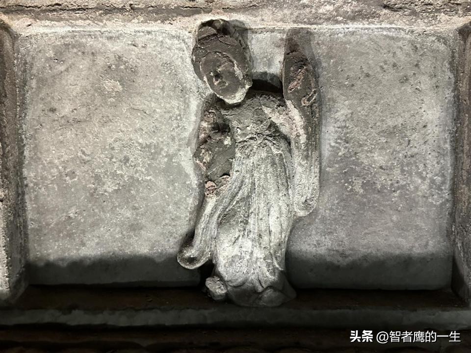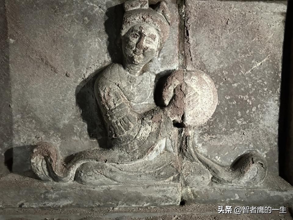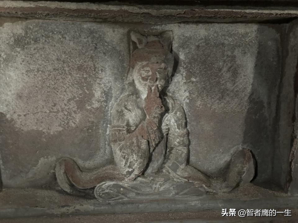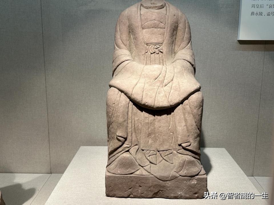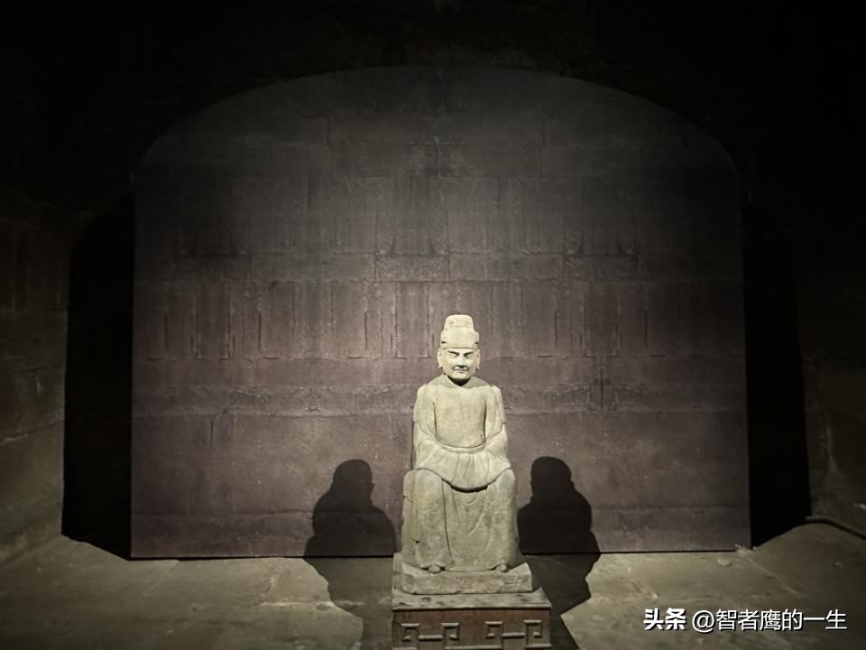 为什么永陵要建在地上,古话有说“成都挖地三尺即见水”,成都地下水位很高,永陵修建于地表之上,可能与此有关。1990年在永陵西侧几百米的地方又发现一座墓葬,经勘测属于王建夫人周皇后墓,史料记载周皇后在王建死后几个月悲痛而死,被合葬到永陵,实际属于同陵不同穴,永陵的发现为研究五代的陵寝制度、唐、五代音乐史的研究提供了重要的实物资料。下面是周皇后的座像,可惜头部已经不存在了。