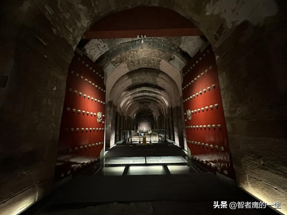 走过神道,就直接进入到了永陵的地宫,和一般帝王地宫不同,进门后不是直接向下,而是沿着约15度倾角向上,在光线的作用下犹如进入了一个时光隧道,穿越到了千年前。