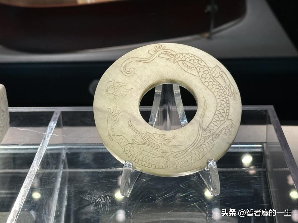 有玺必有组绶,该玉环发现于谥宝之前稍偏东的位置。正面刻一盘旋的龙,背面装饰对称云纹,原是谥宝组绶上的装饰物,因其丝织品己腐坏,现仅存此环。