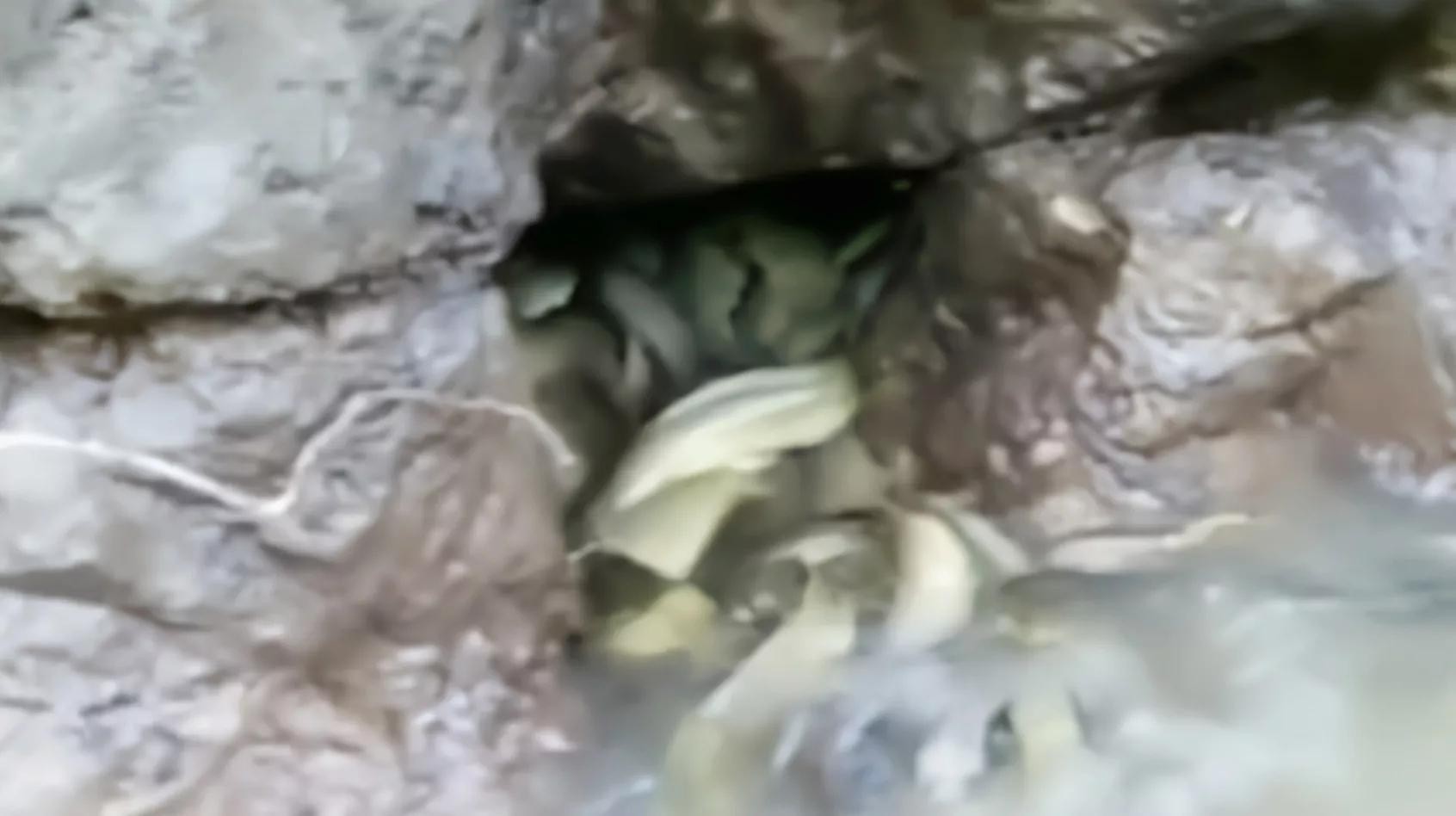 村民们表示:自己也不清楚!只知道这是多少年来,两个山洞往外冒鱼的规律。