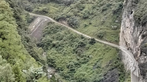 到达山脚下的河边时,几乎已经没有什么路可以走了,羊肠小道时有时无,到处都是乱石。甚至有些路,只是用一些树枝铺垫在悬崖边,宽度仅容一人侧身而过。