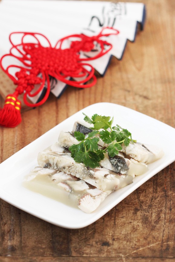 鱼冻,胶状半透明,鲜润软温,若是不喜鱼腥味,可在调制的味汁里放点辣椒,一小块如膏似脂的鱼冻进嘴,有一种清凉,有一种滑腻,配着姜、蒜、葱、醋、辣椒的滋味,既清爽可口,又鲜甜醇美。