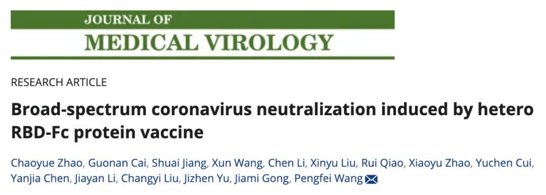 2024年9月16日,王鹏飞团队在 Journal of Medical Virology 期刊发表题为:Broad‐spectrum coronavirus neutralization induced by hetero RBD‐Fc protein vaccine 的研究论文。